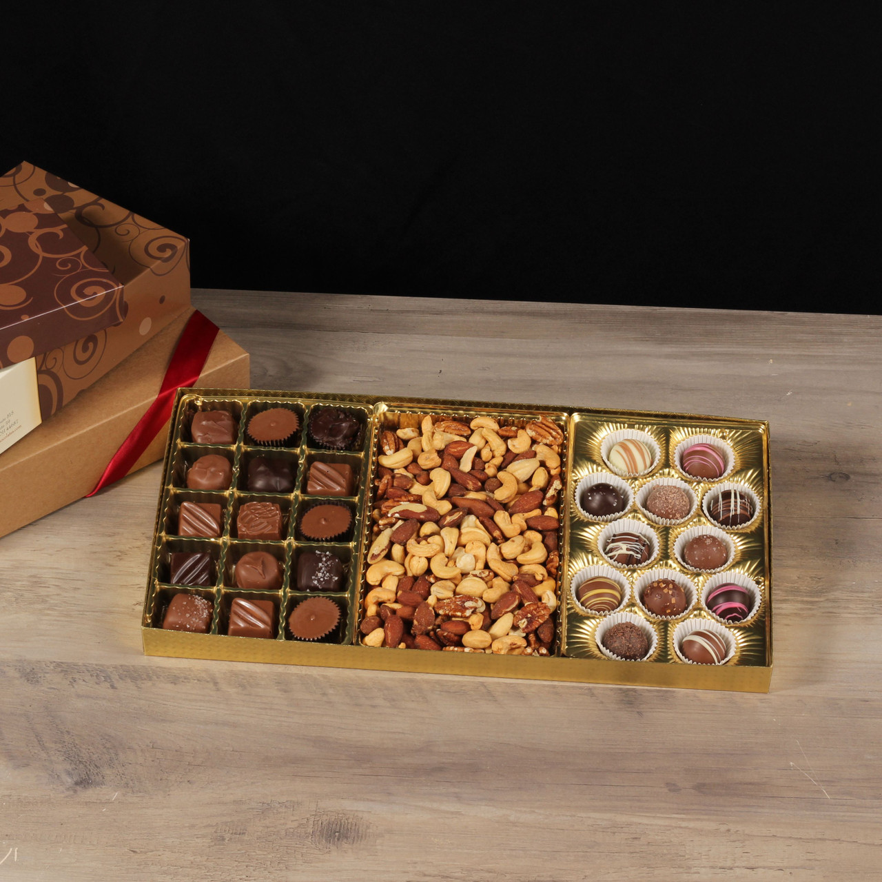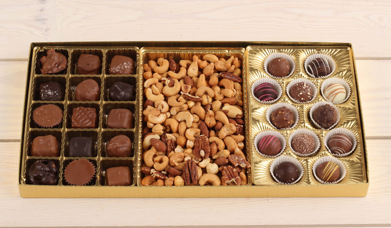 The Coblentz Collection includes 8 oz. Deluxe Assortment, 5.1 oz. Assorted Truffles, and 10 oz. Deluxe Mixed Nuts