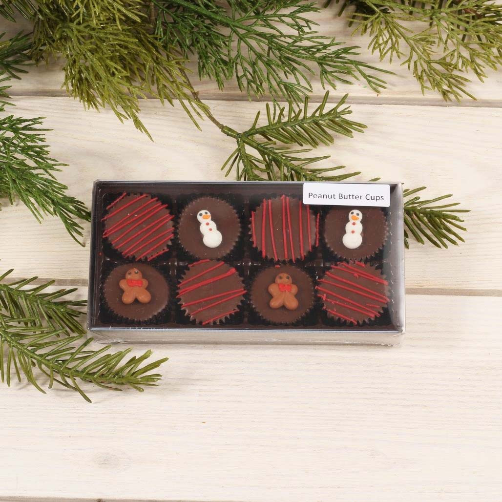 8 piece homemade Peanut Butter Cups topped with fun holiday decor and striping.