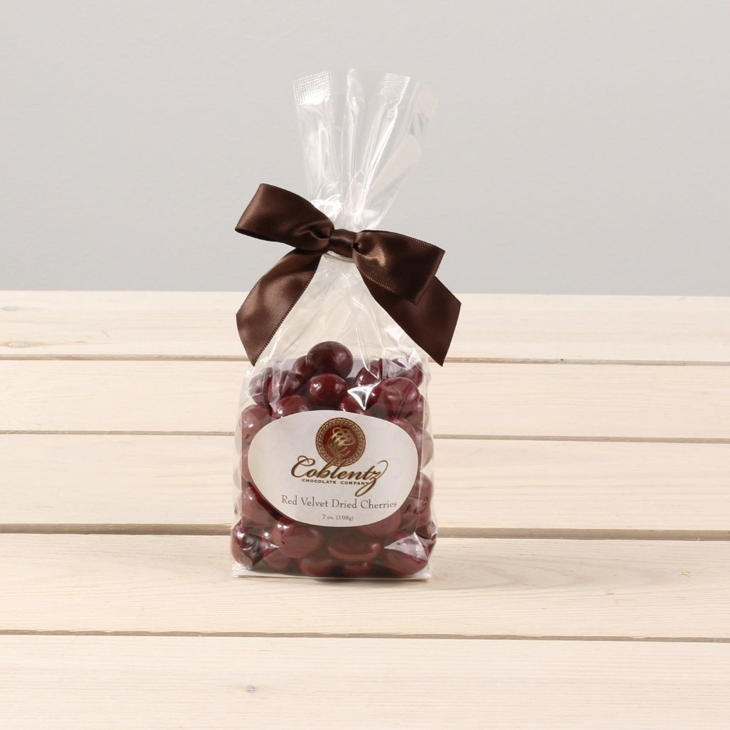Red Cherries dried and covered in sweet chocolate. Each bag contains 7 oz.