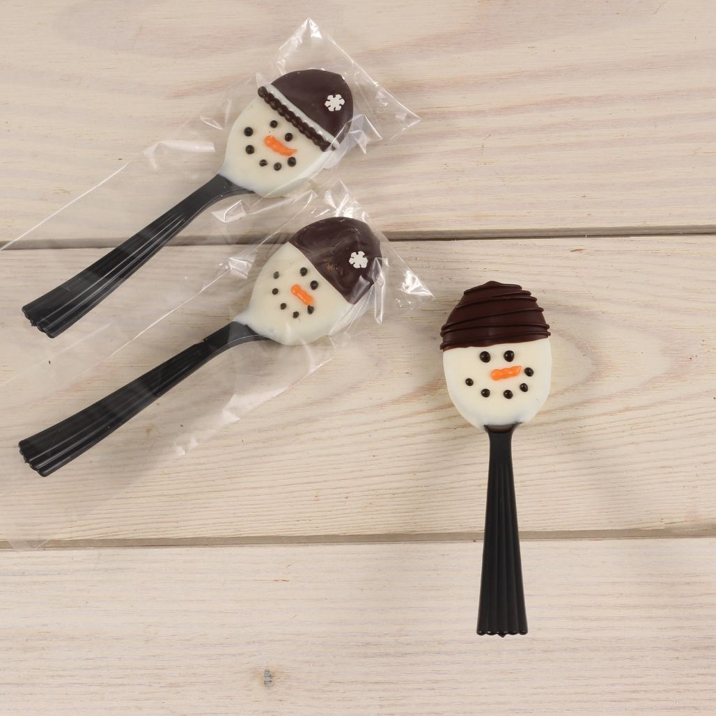 Snowman Chocolate Spoon. Use one of these adorable spoons to stir your hot chocolate or coffee and you will be delighted! Each spoon is hand made and each snowman varies.